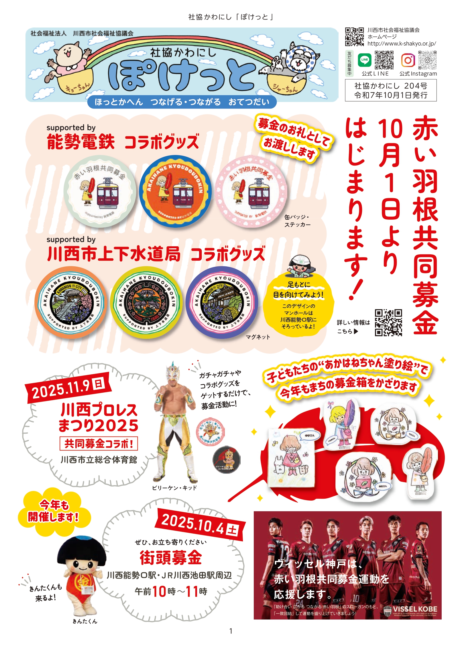 川西市社会福祉協議会の広報紙「社協かわにし『ぽけっと』」は、年3回発行しています。【バックナンバーはこちら】 令和7年10月号(204号)