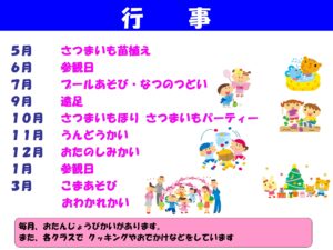 ●グループ遊びや行事などみんなで楽しめる遊びをとおして集団を楽しめるきっかけを作ります。